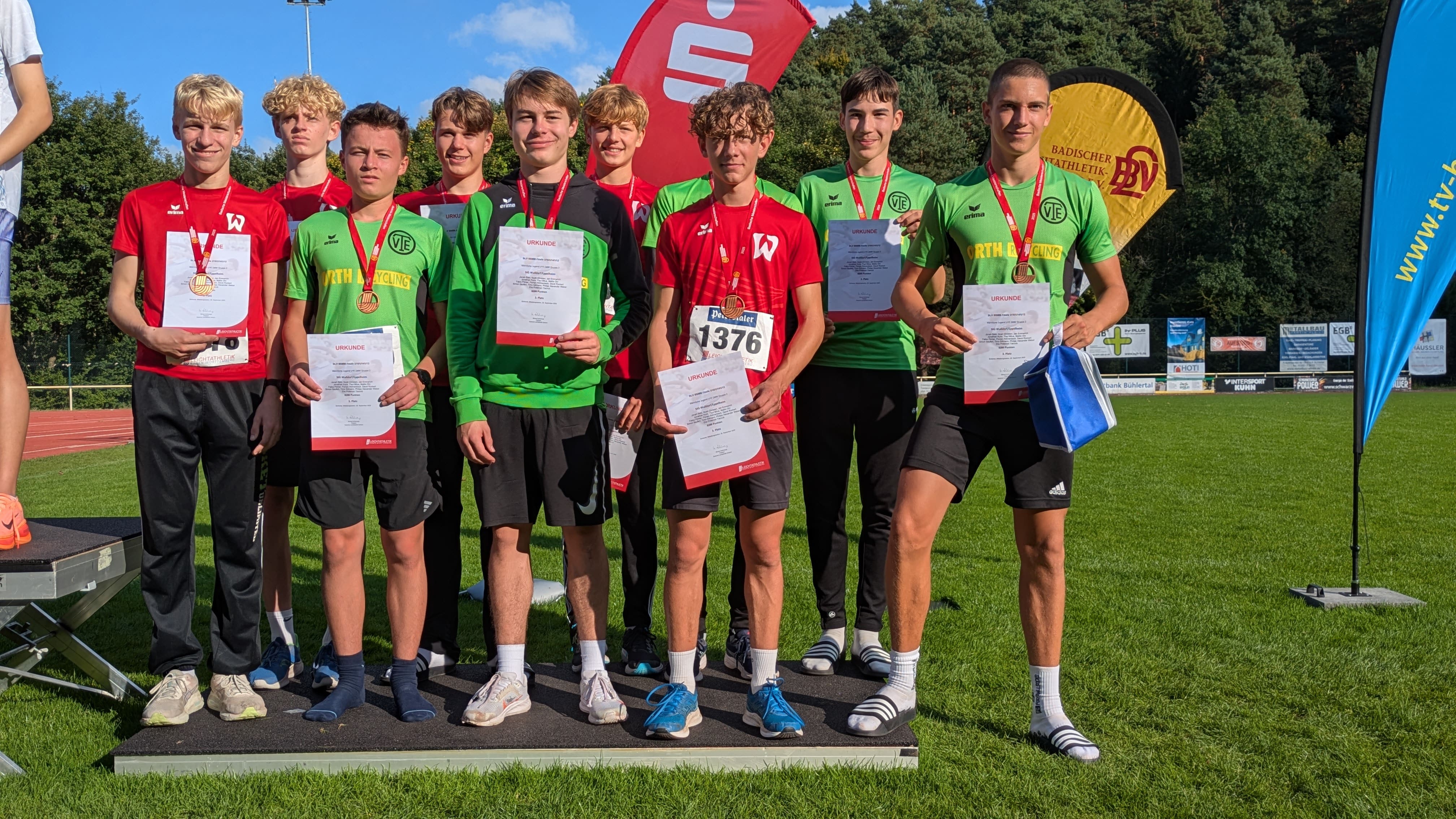 „Unsere jungen Sportler und Sportlerinnen glänzten auch am Ende der Saison mit sehr guten Resultaten und Platzierungen“, lobte Trainer Dieter Heinzmann seine Schützlinge nach dem Badischen Mannschaftsendkampf in Bühlertal (27./28.September). Im herrlich gelegenen Mittelbergstadion konnten die Walldorfer Jungs und Mädchen – zusammen mit den Athletinnen und Athleten des TV Eppelheim – mit den besten Teams aus Baden sehr gut mithalten. Die Jungs der Jugend U 14 waren nach ihrem überragenden Vorkampfergebnis leicht favorisiert, mussten sich nach einem spannenden Wettkampf nur knapp der StG Mannheim/Handschuhsheim/Rohrbach geschlagen geben. Dritte wurden die Jungs der Jugend U 16 und Sechste die Mädchen der U 16.